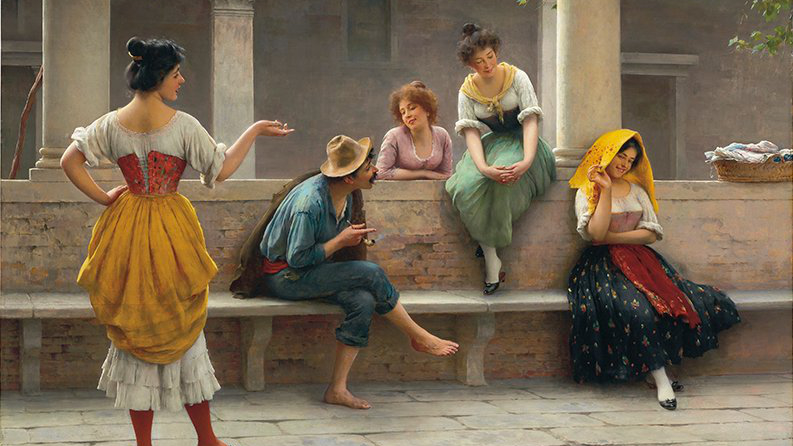 (For the curious, by the way, the illustration is from a painting by Eugen von Blaas, entitled Tratsch, “gossip”.)